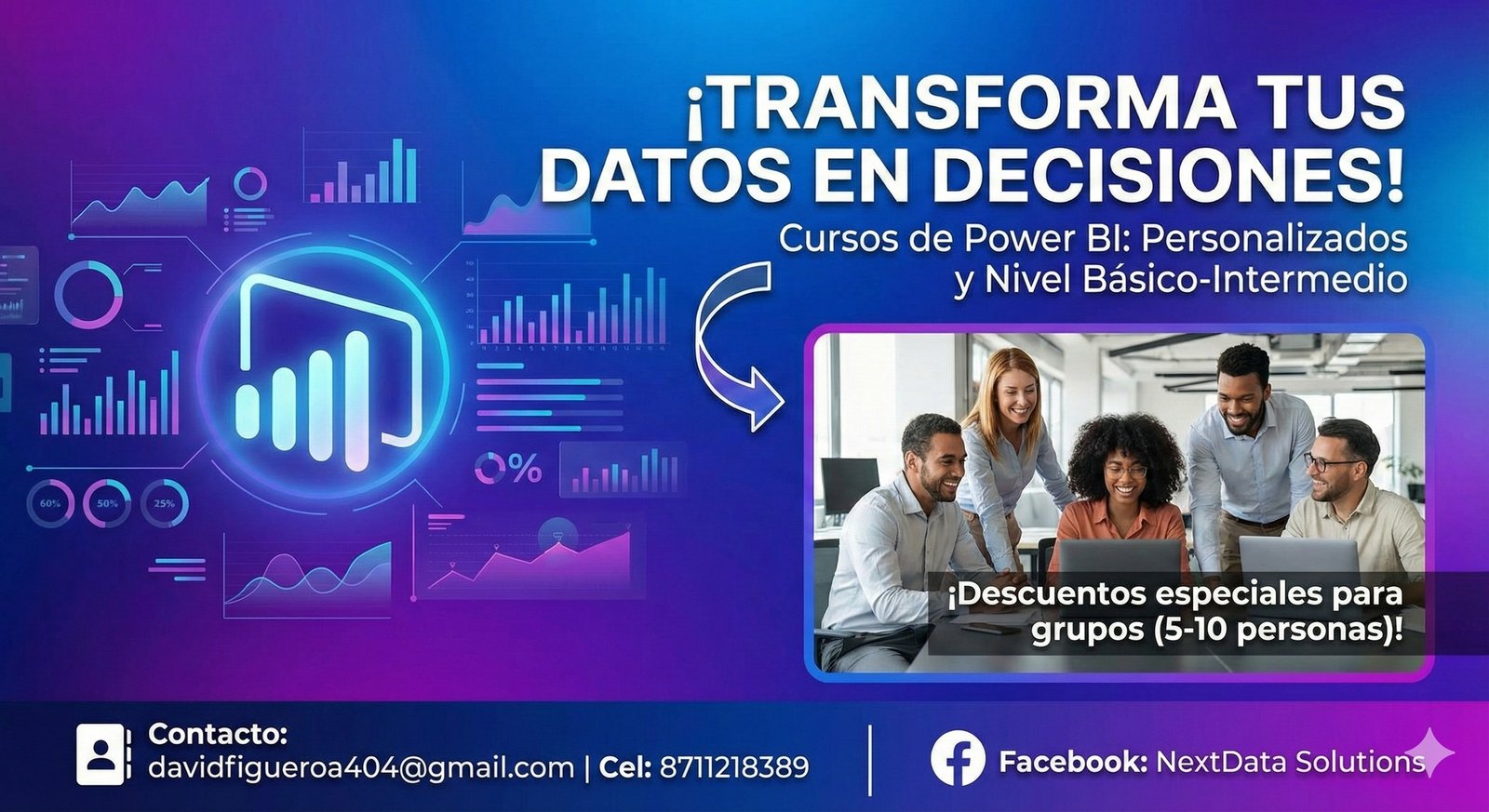 En Next Data Solutions nos especializamos en consultoría, asesoría y capacitación en Power BI. Ayudamos a analistas, equipos de datos y empresas a transformar reportes lentos y confusos en dashboards claros, rápidos y listos para la toma de decisiones.